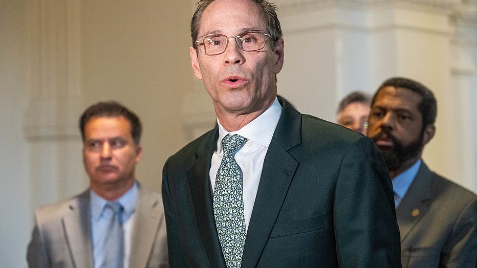 AUSTIN, TEXAS - AUGUST 12: Sen. Nathan Johnson (D-Dallas) speaks during a press conference after a group of Senate Democrats walked off the Senate floor as the redistricting bill was brought up on the agenda at the Texas Capitol in Austin, Tuesday, A