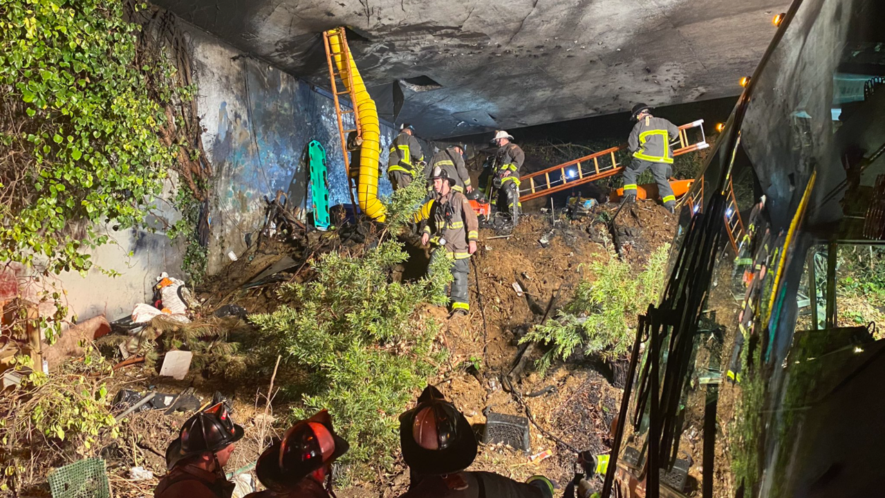 "Originally the team arrived on scene and found a wild land fire. And during fighting the wild land fire, they heard a call for help and discovered that there were four people up inside of the overpass," said Battalion Chief Patrick D'Arcy.