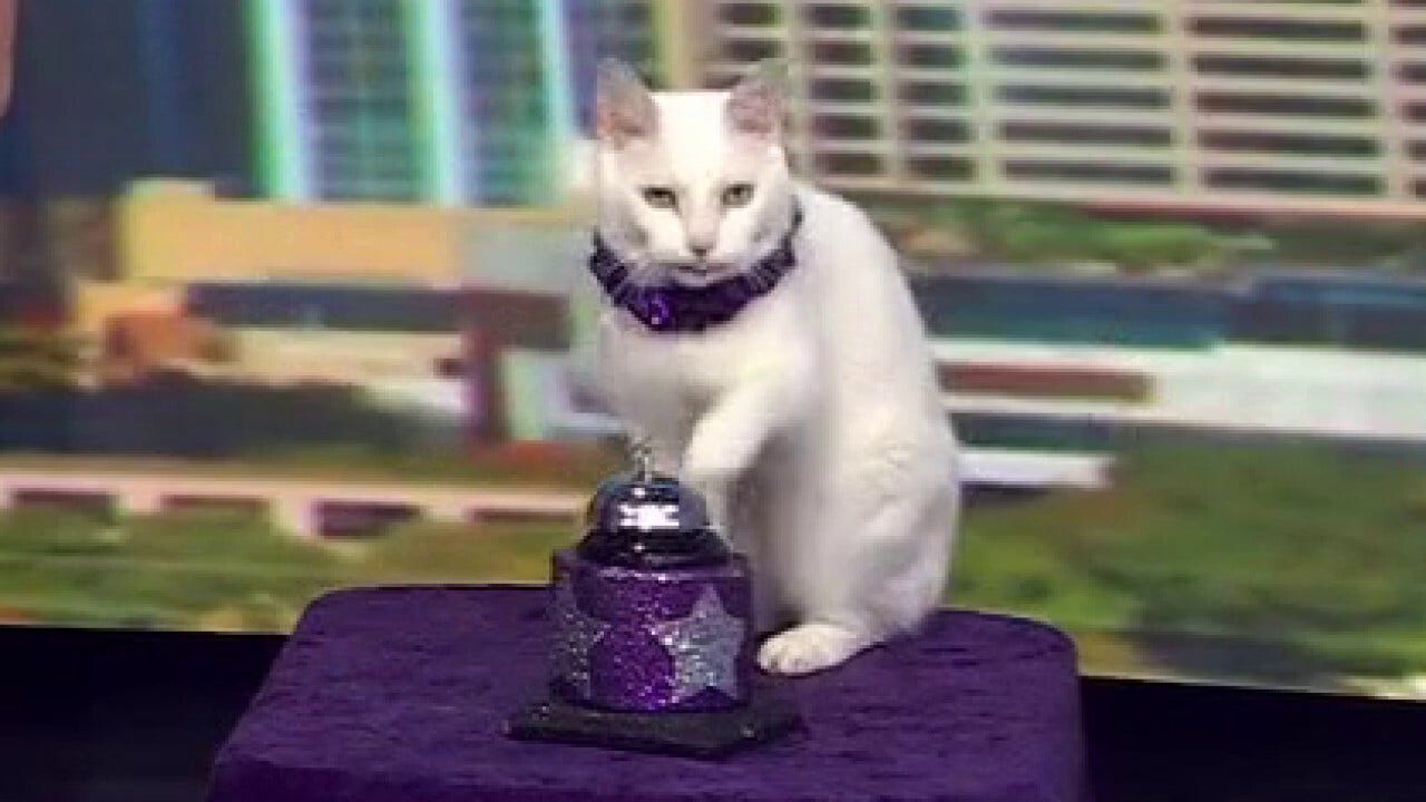 Albacore Tuna demonstrates his bell ringing trick in the FOX 7 Austin studios.
