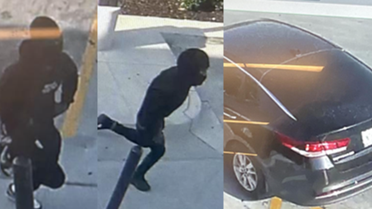 - Last seen wearing a black hoodie with white letters on the chest, black pants, sneakers, ski mask, and armed with a semi-automatic pistol with a silver slide and black frame.