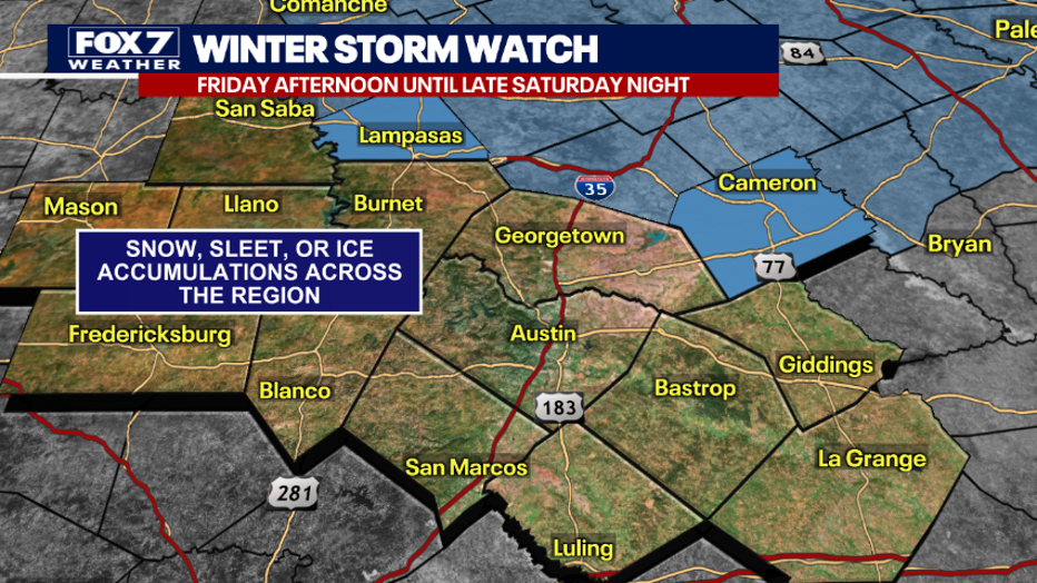 AUSTIN, Texas - A cold front arriving on Friday will bring arctic air and below-freezing temperatures to Central Texas, with overnight lows potentially dropping into the teens Saturday.