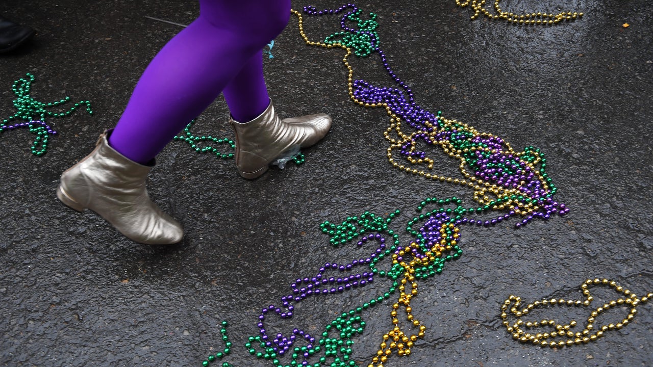 NEW ORLEANS, LA - FEBRUARY 17: A person walks among beads during the Krew of Cork parade on Friday February 17, 2017 in New Orleans, LA. The parade, which was part of the Mardi Gras festivities was wine themed. (Photo by Matt McClain/The Washington P