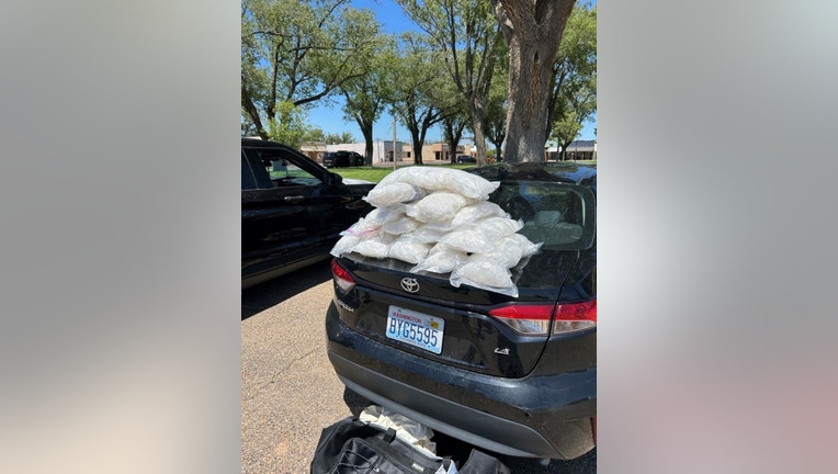 During the stop, a drug canine alerted to the vehicle. A subsequent search uncovered three duffel bags containing 15 bundles of methamphetamine weighing more than 97 pounds. Prosecutors said the drugs had a street value of at least $400,000 in the Amarillo area.