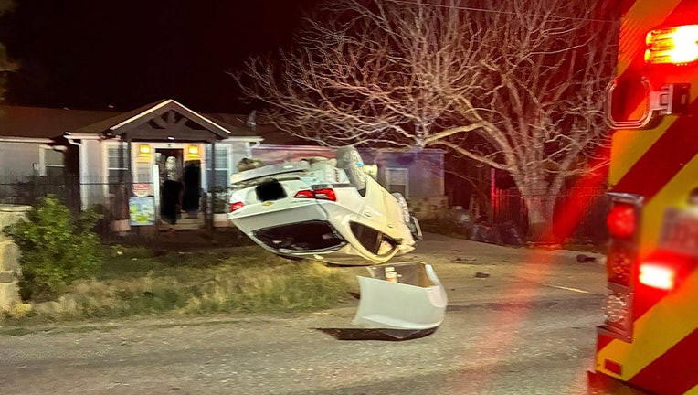 MUSTANG RIDGE, Texas - The Mustang Ridge Police Department says it assisted in a Department of Public Safety pursuit that ended with a car overturned in a person's front yard.