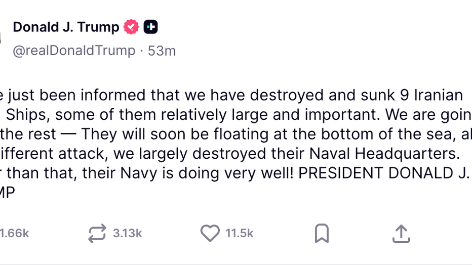 Trump says 9 Iranian Navy ships destroyed