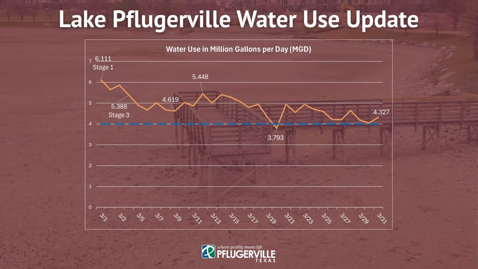 On March 31, the city's use sat at 4.327 MGD. Only once did the city drop below the stated goal; on March 20, the city's usage sat at 3.793 MGD.