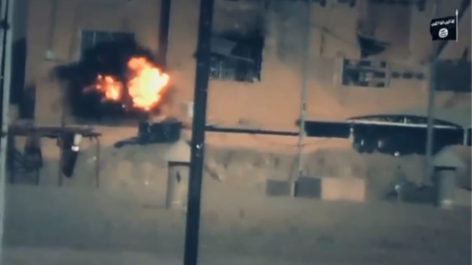 Examples of ISIS media releases that Garza provided: A photo of explosion in part of a building (Source: Office of Public Affairs)