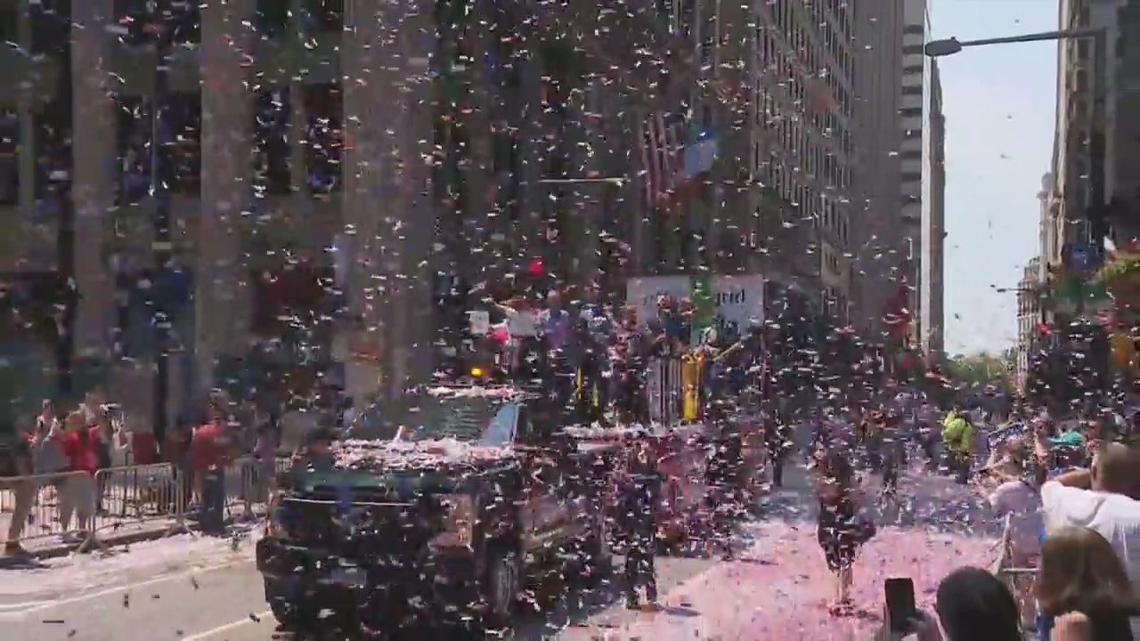 "We’ve got a lot to appreciate because we’re well underway in our recovery. We’ve got a lot to celebrate and we’ve got a lot of people to celebrate," said Mayor Bill de Blasio, who rode during the parade on a float with hospital employees and Mr. Met, the mascot of the New York Mets.