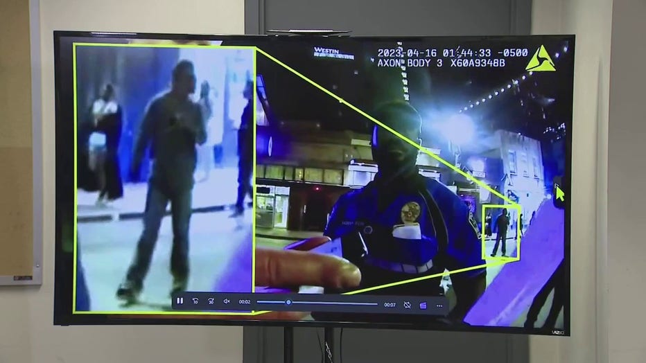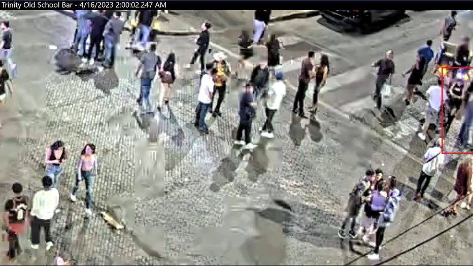 Investigators also found video of the man going as far back as 1:30 a.m. that day approaching two groups of women. During the first interaction, video shows him putting information into a woman's phone at the corner of 6th and Trinity.