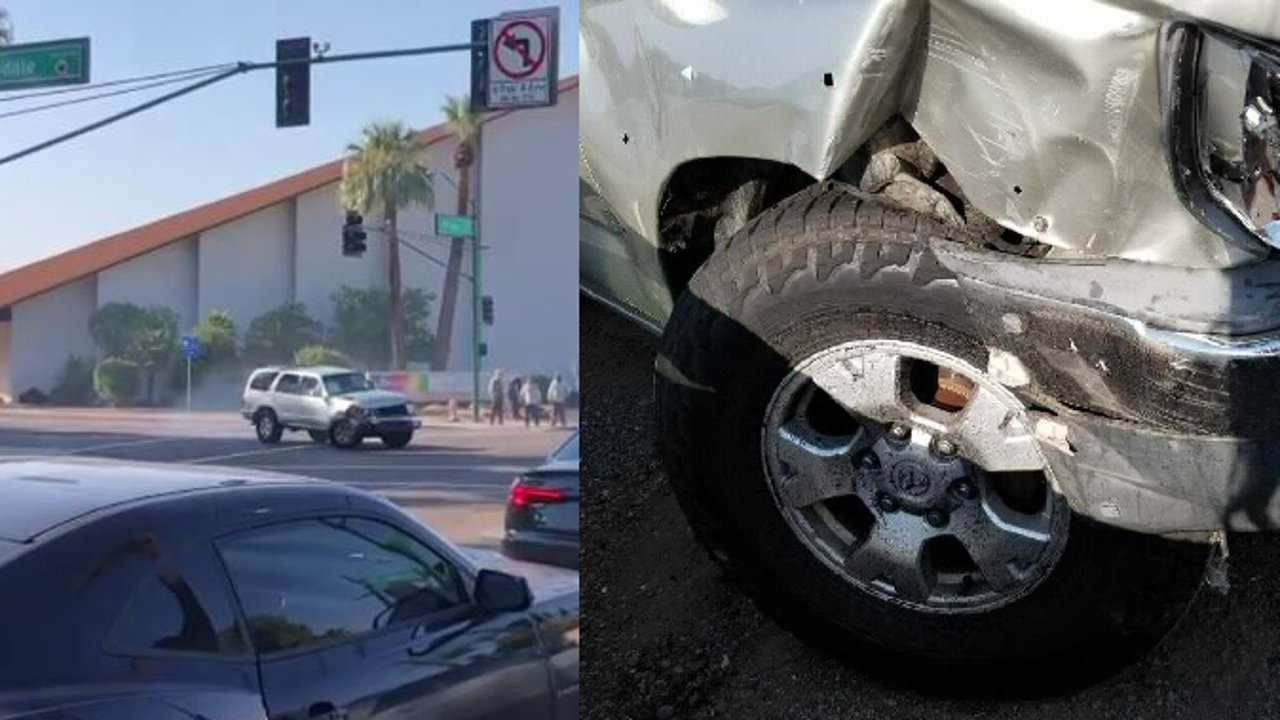 The driver of a Toyota 4-Runner jumped from her car during a Phoenix crash because it lost control, going in circles until emergency crews were able to regain control.