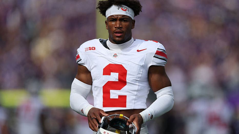 SEATTLE, WASHINGTON - SEPTEMBER 27: Caleb Downs #2 of the Ohio State Buckeyes looks on before the game against the Washington Huskies at Husky Stadium on September 27, 2025 in Seattle, Washington. (Photo by Steph Chambers/Getty Images)