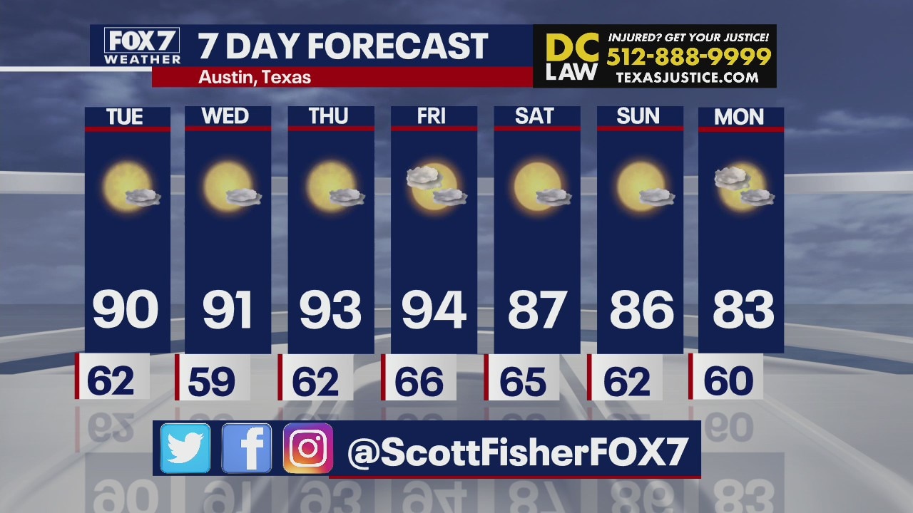 Highs are in the 90s this week in Central Texas, Scott Fisher has the latest details