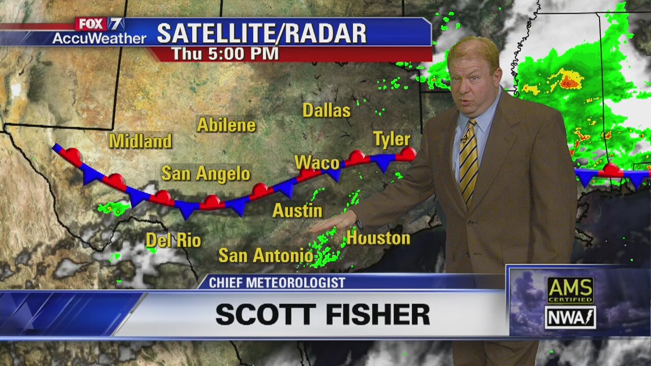 Scott Fisher says tonight will be cloudy with a 40 percent chance of showers and thunderstorms. Lows will be in the mid 60's with 5 to 10 MPH winds from the Southeast.