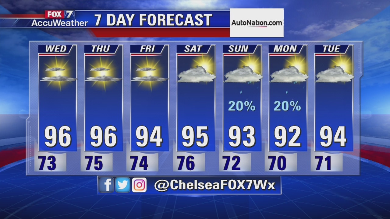 FOX 7's Chelsea Andrews explains how many more 90+ degree days we are in store for over the rest of the week.