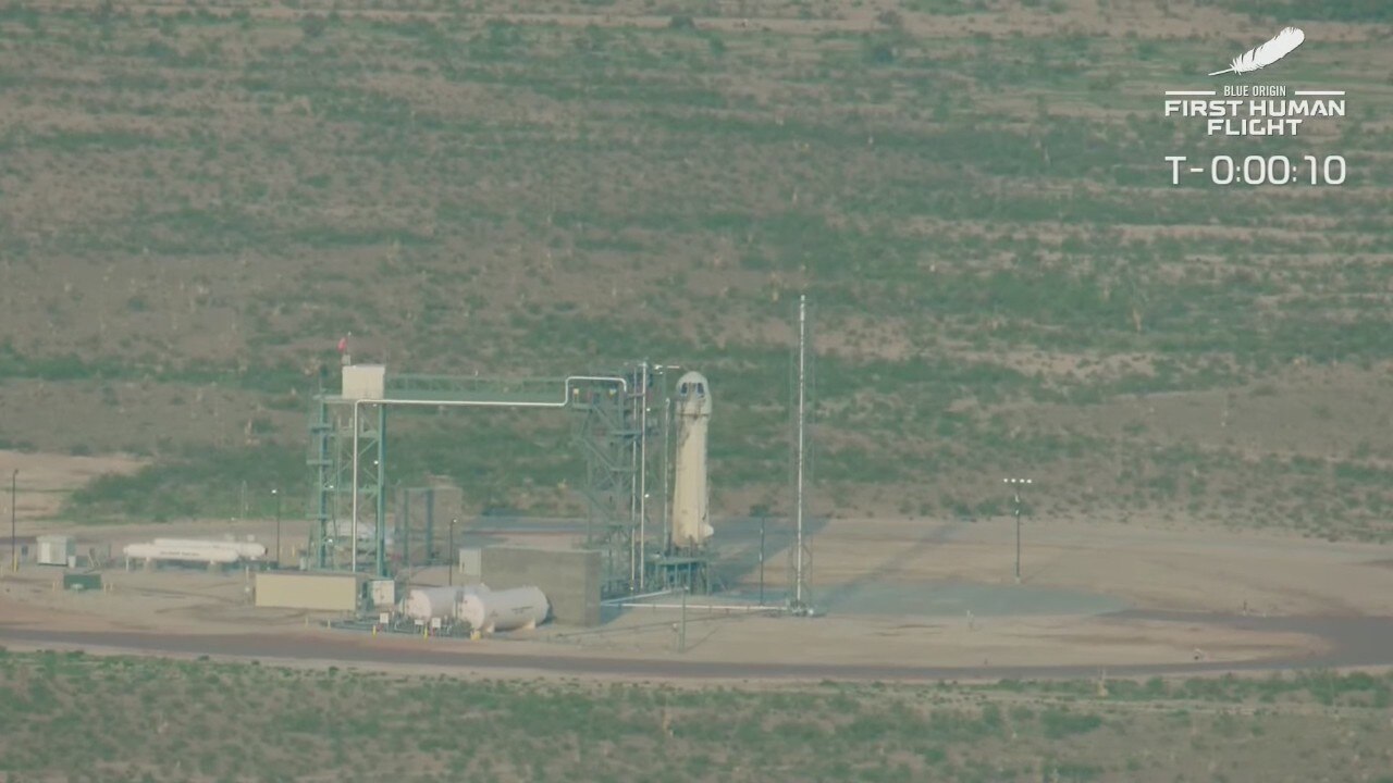 Amazon's Jeff Bezos, Mark Bezos, 18-year-old Oliver Daemen and 82-year-old Wally Funk blasted off from Van Horn. (Video courtesy Blue Origin)