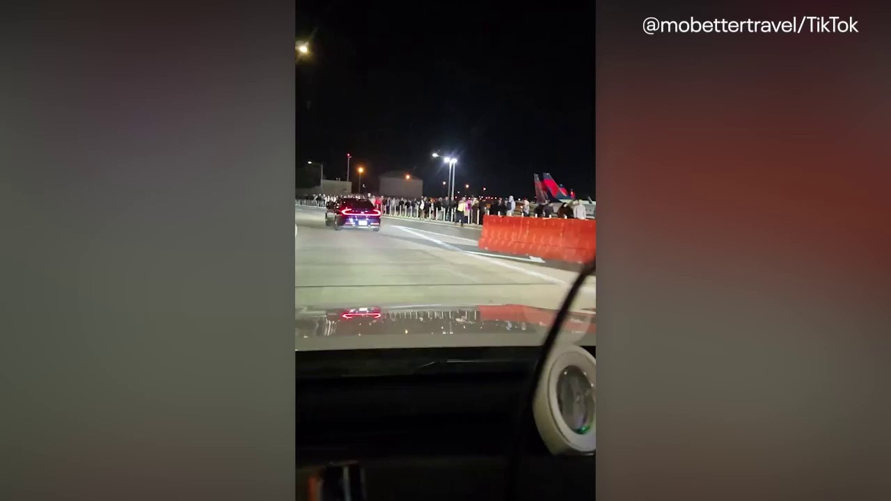 Line of passengers stretch down street at Austin airport