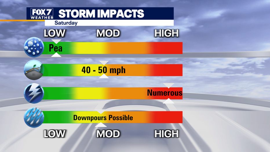 From noon to 5pm Saturday, the storm threat increases.