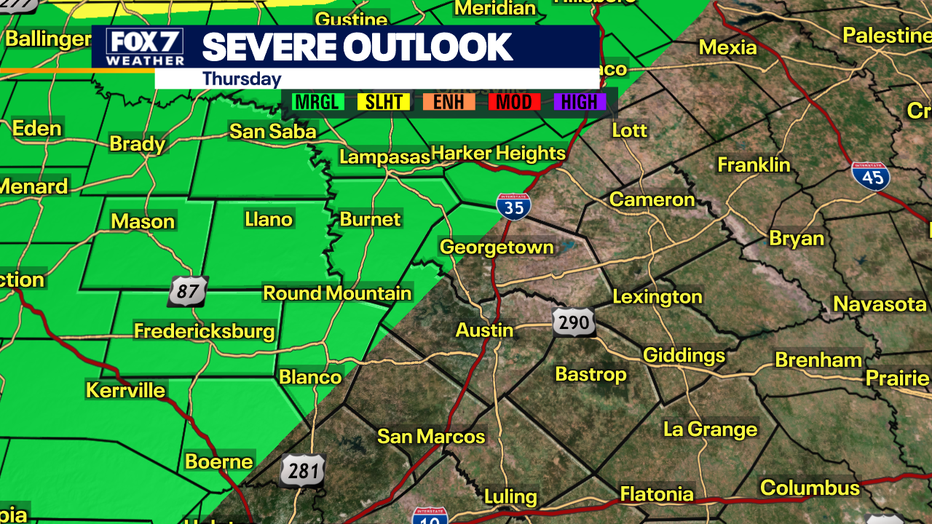 However, most of the threat is predicted in the Hill Country and west of I-35 towards Kerr, Gillespie and Burnet counties.
