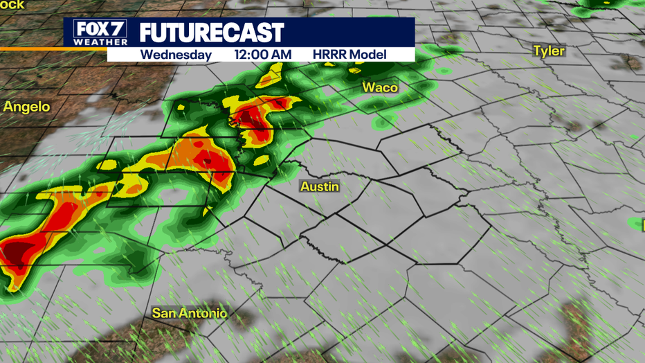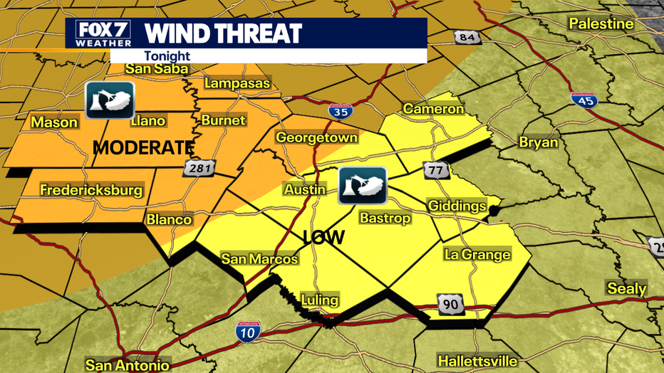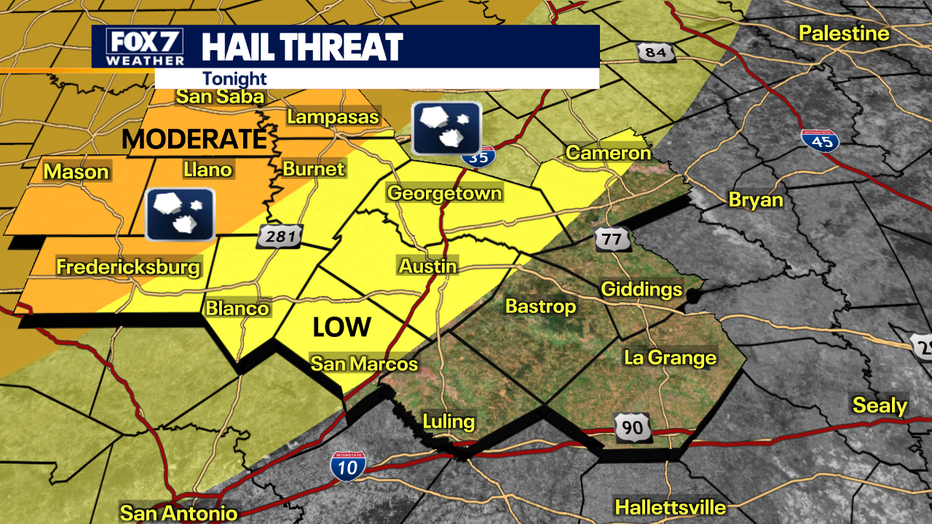 Most of the action this evening will occur west of Austin.