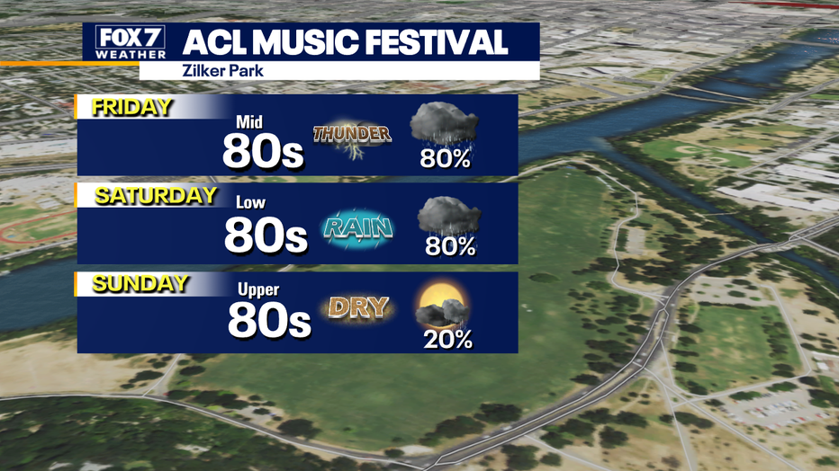 What's the weather going to be like for ACL Music Festival? Zack says it will be cloudy, cooler, and rainy at times with mud on the side.