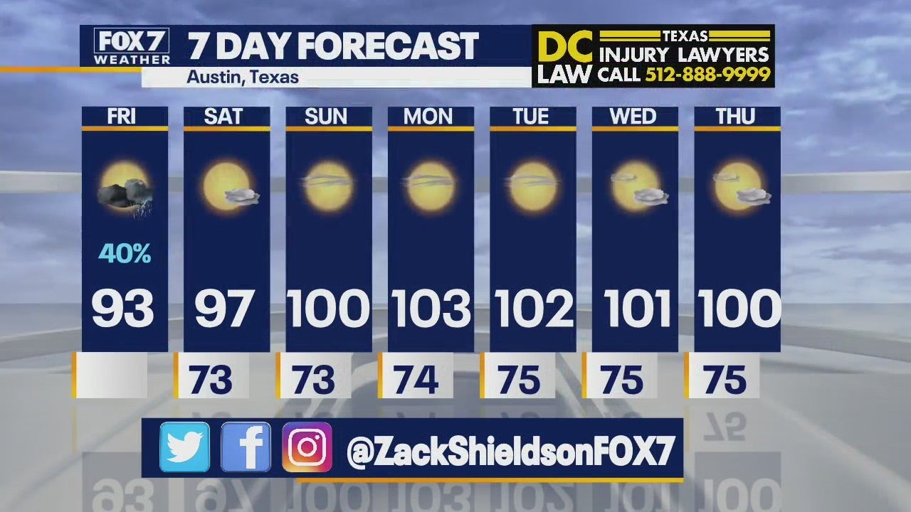 The FOX 7 Austin Weather Team is tracking a complex of storms in West Texas that is expected to have a chance to survive long enough to reach parts of Central Texas. The prime areas to see rain will be from Austin to Hill Country.